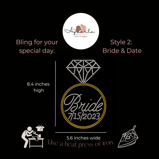 Bride Ring with Sparkle or Date Rhinestone Transfer, Rhinestone Transfer Iron On Bling
